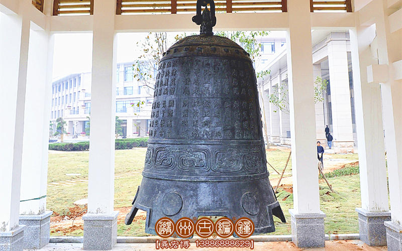 警示鐘,通高2米,下部口徑1.4米,上部鈕高0.3米,總重約1600公斤。襄陽(yáng)市檢察院定制,警世鐘是本次青銅器訂單當(dāng)中,規(guī)格最大,文字最多,要求最高,用銅最重的器物,他的制作工藝如果運(yùn)用我們的失蠟精密鑄造法,反而達(dá)不到精良效果,因而我們聘請(qǐng)了多位專家指導(dǎo),運(yùn)用最先進(jìn)復(fù)合型精密鑄造工藝,其中使用陶瓷型技術(shù)制作鐘外模,運(yùn)用樹(shù)脂砂工藝做鐘內(nèi)心,因而得到了完好鐘體外形,保證了發(fā)音的渾然一體,精細(xì)的紋飾反映了獨(dú)特的地域歷史文化。